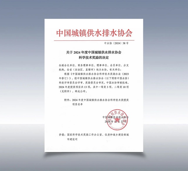 中國城鎮(zhèn)供水排水協(xié)會科學技術獎作為城鎮(zhèn)供水排水行業(yè)最具權威的獎項,旨在推動城鎮(zhèn)供水排水行業(yè)科技創(chuàng)新與技術進步,加速科技成果轉化,激勵在城鎮(zhèn)供水排水行業(yè)科技進步中做出突出貢獻的單位,本年度共評出獲獎項目13項,其中一等獎3項、二等獎10項。